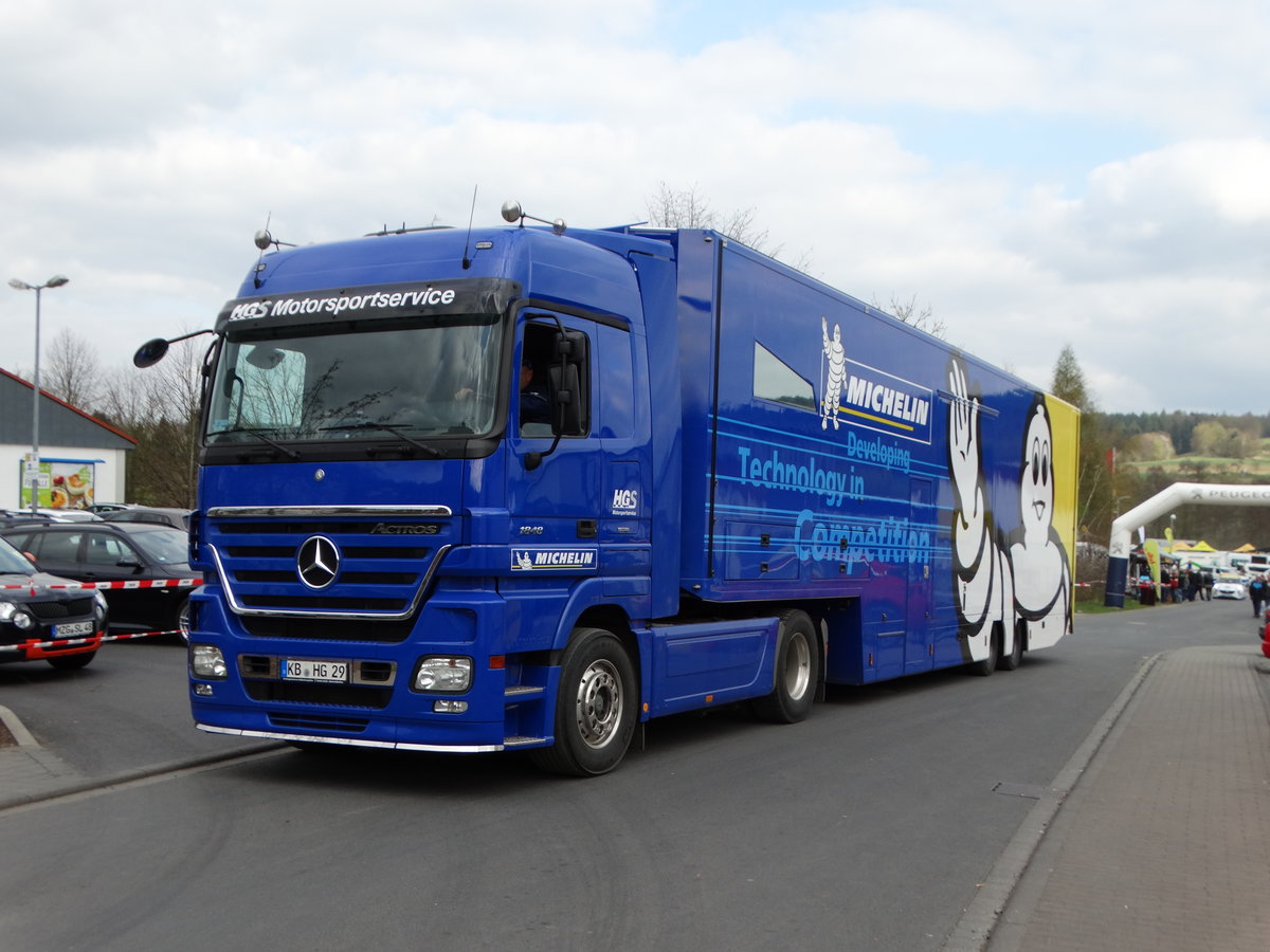 Michelin Mercedes Benz Actros am 08.04.17 in Schlitz im Rahmen der ADAC Hessen Vogelsberg Ralley