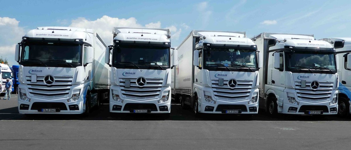 =4 x MB Actros von BRÄHLER-Transport stehen beim Country-, Trucker- und Streetfoodfestival Fulda im Juli 2017