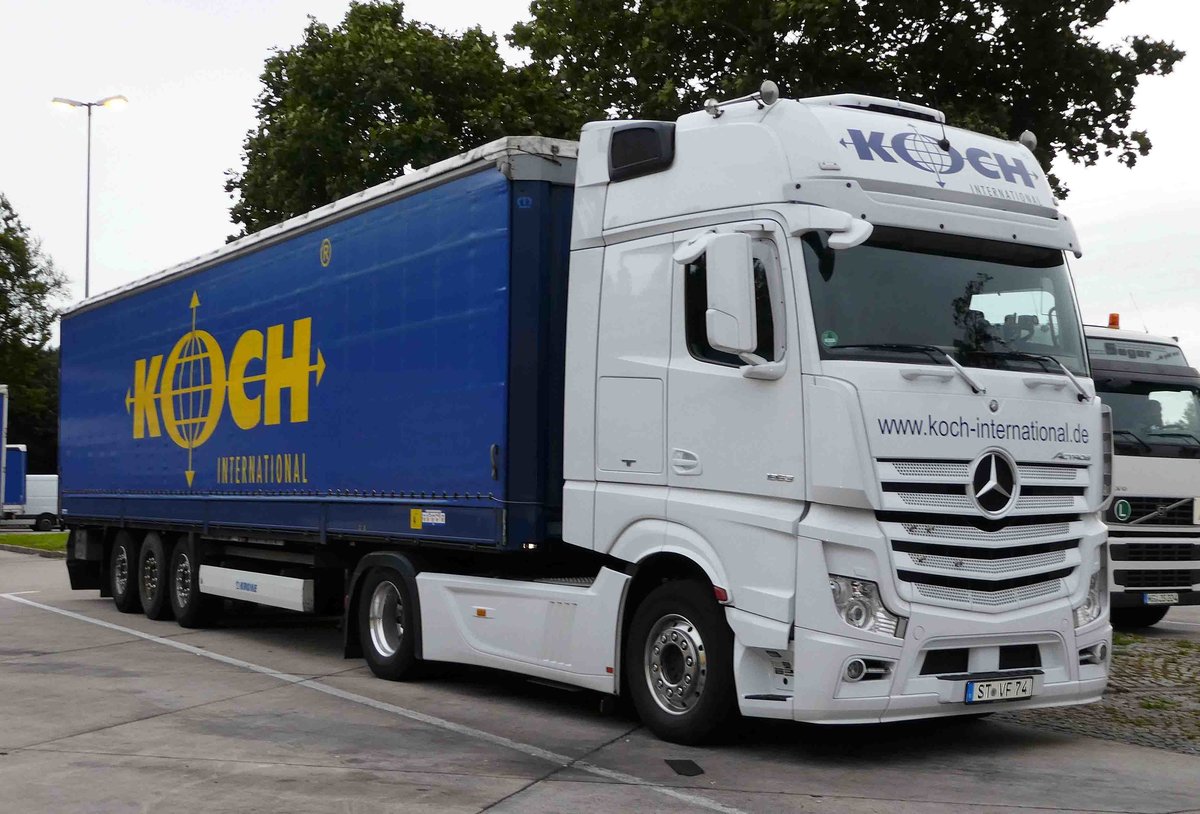 =MB Actros der Spedition "KOCH" steht auf einer Rastanlage an der A7, 09-2017