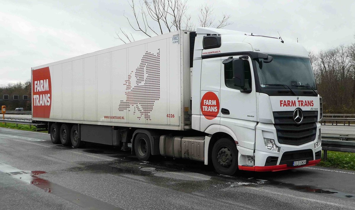=MB Actros-Sattelzug von "FARM TRANS" rastet im November 2017 an der A3