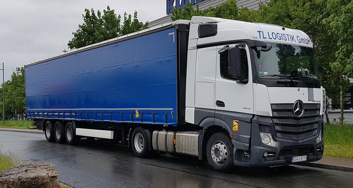 =MB Actros-Sattelzug von TL LOGISTIK steht auf der Rastanlage Bruchsal, Mai 2021