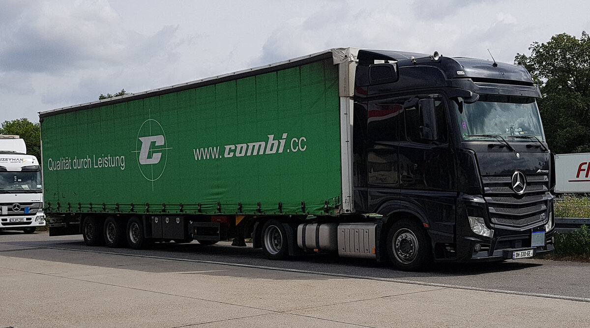 =MB Actros-Sattelzug rastet auf der Rastanlage Bruchsal im August 2021