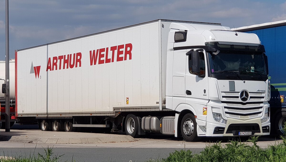 =MB Actros-Sattelzug der Spedition ARTUR WELTER, gesehen im April 2022 an der A 3