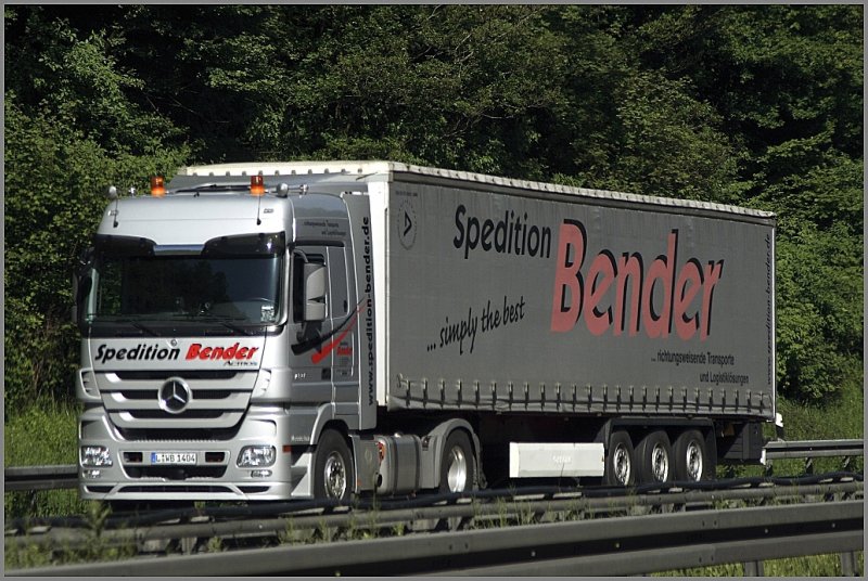 simply the best SPEDITION BENDER: Actros 1846 MP3 der Spedition BENDER aus Leipzig ist auf der A45 unterwegs. (30.05.2009)