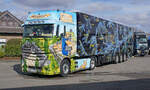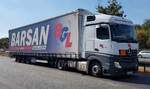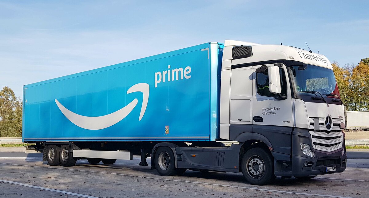 =MB Actros-Sattelzug mit einem Auflieger mit Amazon Prime Werbung, 10-2022