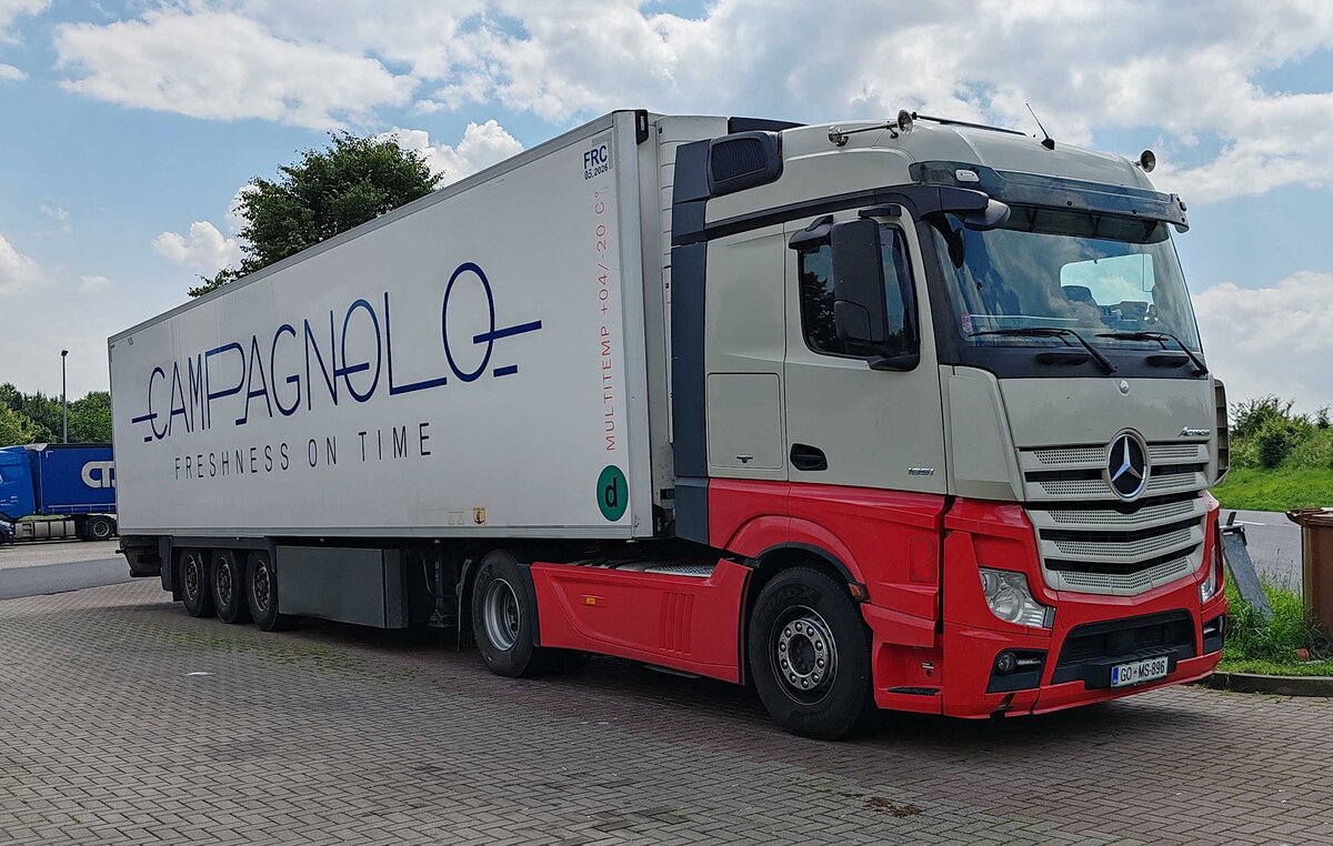=MB Actros mit einem Sattelauflieger der Firma CAMPAGNOLO rastet im Juni 2024 an der A7