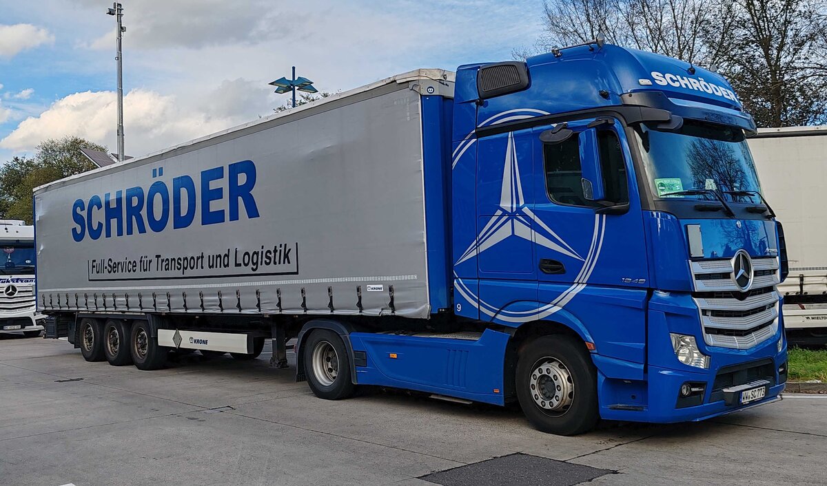 Der MB Actros Sattelzug von Camion Transport im Schwinger Design am 4.9.25 auf der Raststätte Grauholz.