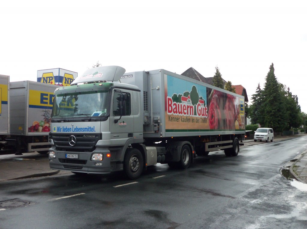 Mercedes Actros Sattelzug stand am 11.06.2010 morgens beim Abladen in der Goethestraße/Lehrte.
