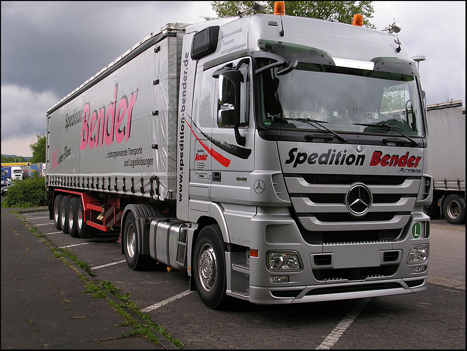 Mercedes Actros 1848 der Sped. Bender - blitzsauber hier bei der Rast an der A45 - Juli 2010