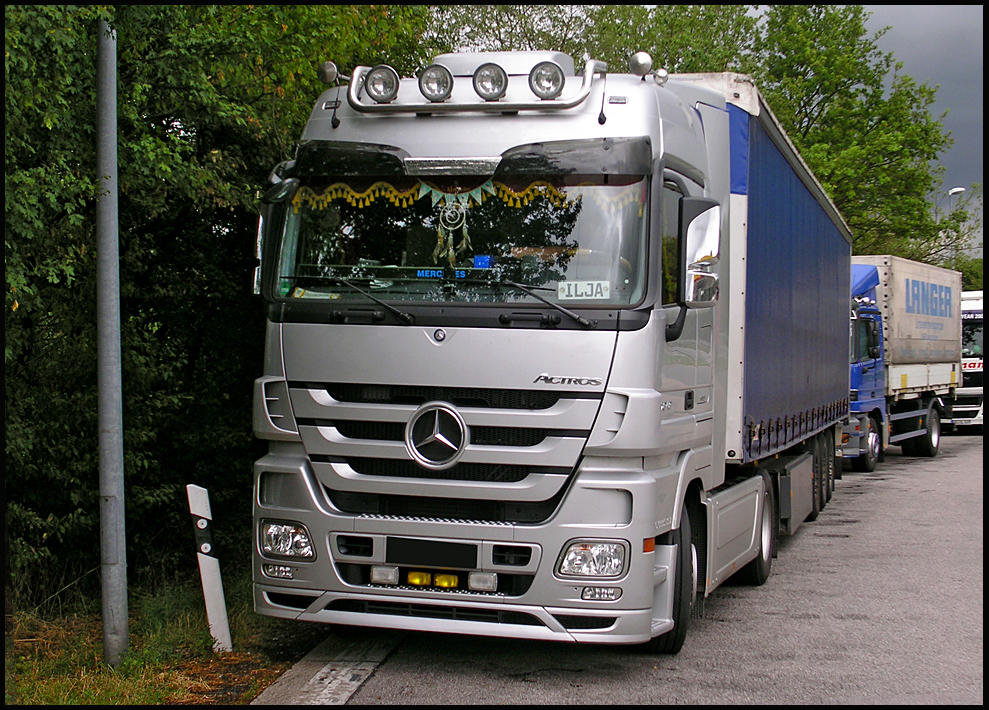 Mercedes Actros 1848 bei der wohlverdienten Pause auf der Raststätte - im Juli 2010