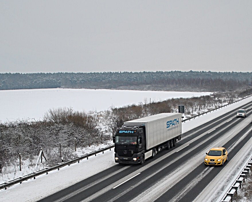 Mercedes Actros auf der A2 bei Lehrte, am 19.12.2010.