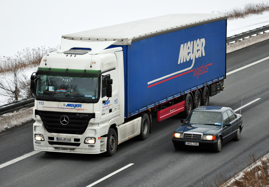 MB Actros 1848 "Meyer Logistics" auf der A61 bei Miel - 30.12.2010