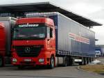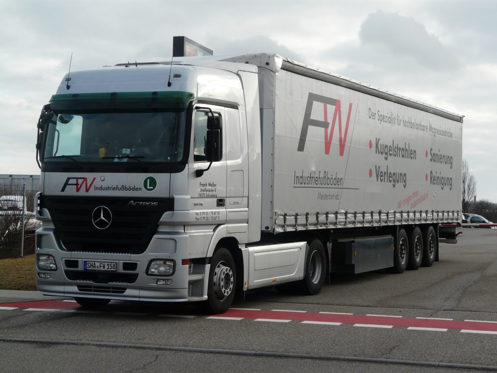 MB Actros 1846 MP2 von "FW Industriefußböden" wartet nach erledigtem Service auf die Abholung, Crailsheim, 19.02.2012