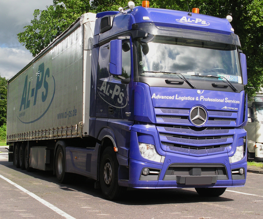 August 2012/ der Logisticer AL -PS hat auch bereits den Mercedes - Actros mit neuem Gesicht auf der Straße.. hier ist es der Typ 1845 -