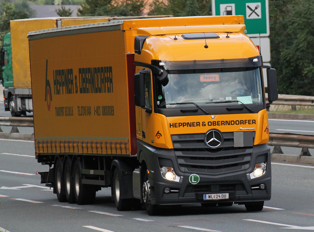MB Actros 1842 "Heppner & Oberndorfer" aus Österreich unterwegs auf der Brennerautobahn Richtung Süden, 28.08.2012