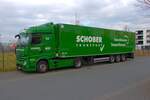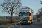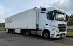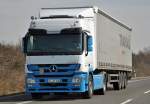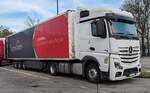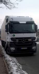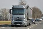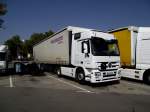 Aufgrund eines Oldtimermarktes am Frikus-Gelände verbrachte ein Teil der orange-grünen Flotte das Wochenende auf einer Nebenstraße, wie dieser Axor 1840 mit Schubbodenauflieger.28.4.2013