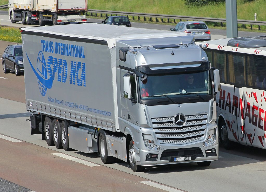 Mercedes-Sattelzug aufgenommen am 02.07.2013 auf der A5 beim Flughafen Frankfurt.