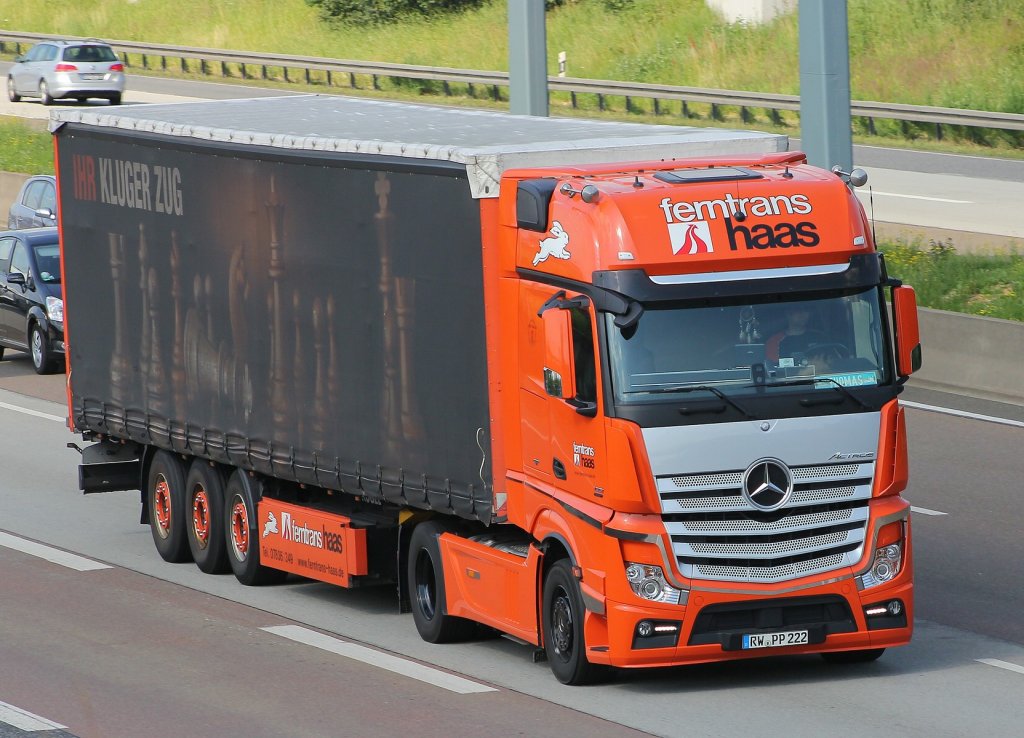 Mercedes-Sattelzug aufgenommen am 02.07.2013 auf der A5 beim Flughafen Frankfurt.