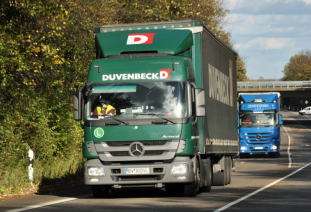 MB Actros Pritschenauflieger "Duvenbeck" bei Rheinbach - 30.10.2013