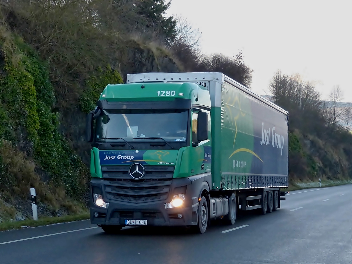 M-B Actros fährt mit Leichtigkeit die Steigung hoch. Dezember 2013.