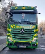 =MB Actros der Spedition HANS GICK steht zur Fahrerpause an der B 27 im Dezember 2021. Grüße an den sehr netten Fahrer!