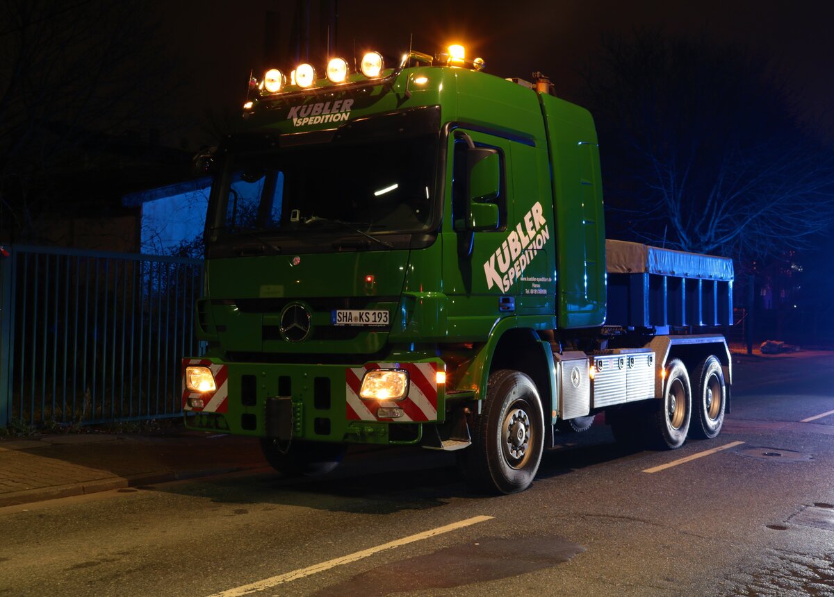 Spedition Kübler Mercedes Benz Actros am 12.01.22 bei einen Schwertransport in Frankfurt am Main