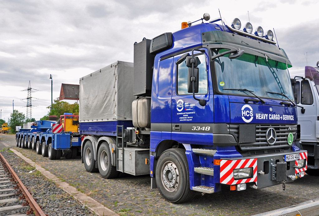 MB Actros 3348 Schwerlast-Zugmaschine, am Bahnhof in Meckenheim - 31.07.2010