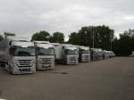 Zwei Volvo FH Sattelzugmaschinen und eine Mercedes Actros Sattelzugmaschine in Vojens am 13.09.2025