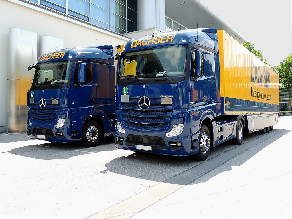 ACTROS-1845 von DACHSER strahlten anlässlich der Transport-Logistic2013 in Münschen im Doppelpack um die Wette; 130607