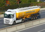 Spedition Sewert mit einem Silo-Sattelzug für Lebensmitteltransporte mit MB ACTROS 1845 Zugmaschine am 08.07.20 Berlin Marzahn.