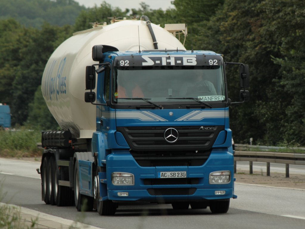 Mercedes Axor mit Siloauflieger am 22.07.2011 auf der A4 kurz vor der Niederländischen Grenze.