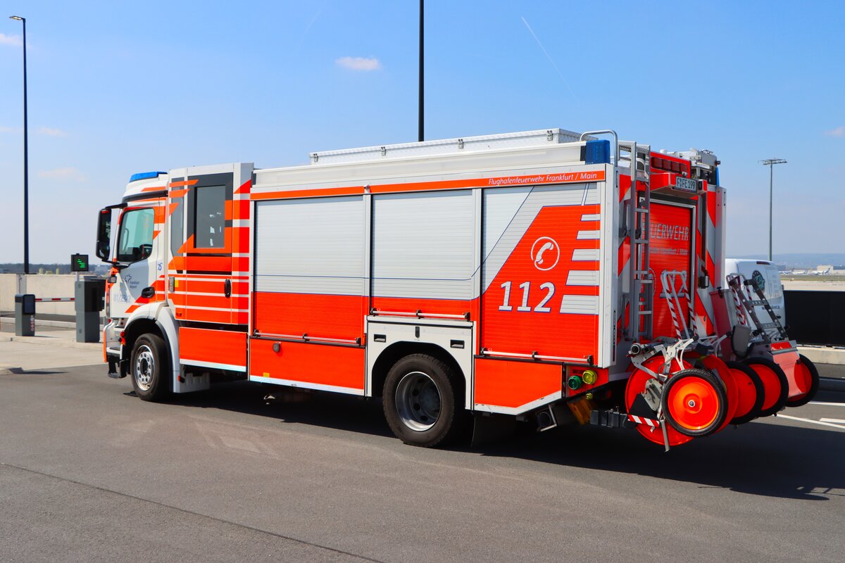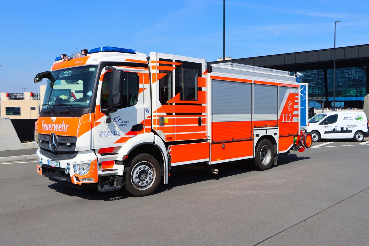 Frankfurt Airport Flughafenfeuerwehr Mercedes Benz Antos 1843 Ziegler HTLF (Florian Frankfurt-Flughafen 81/23-2) am 11.04.26 beim Terminal 3 Eröffnungsevent
