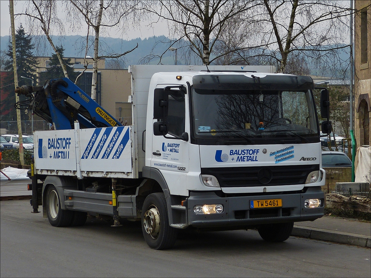 . Mercedes Benz Atego hat schwer zu tragen mit dem Palfinger Kranaufbau. März 2016