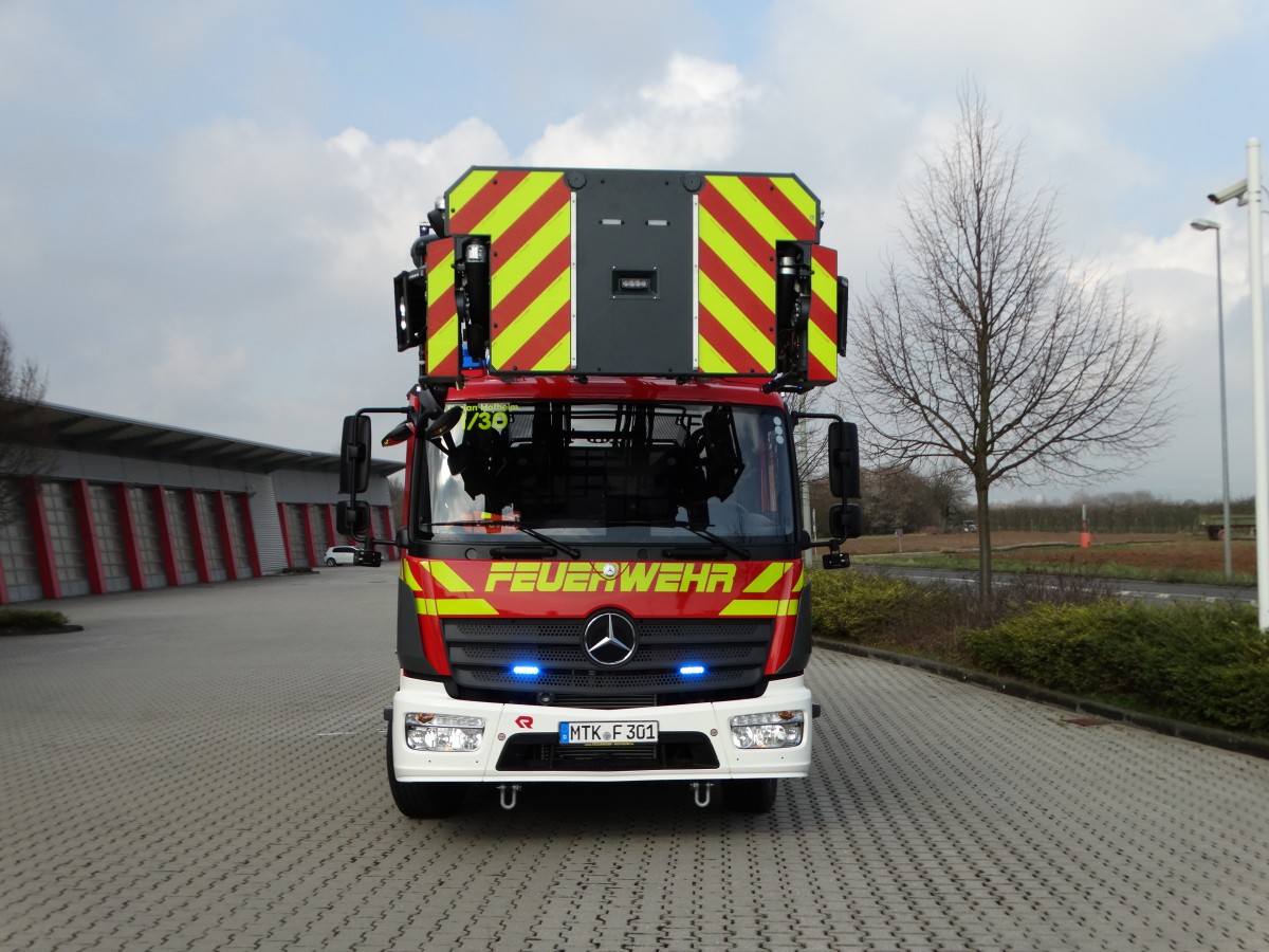 Mercedes Benz Atego DLA(K) (Florian Hofheim 1-30-1) der Feuerwehr Hofheim im Taunus v von vorne. Dank des netten Wehrleiter durfte ich das Fahrzeug auch noch mal mit Blaulicht fotografieren. Dieses Foto ist bei einen vereinbarten Fototermin gemacht worden am 08.03.16