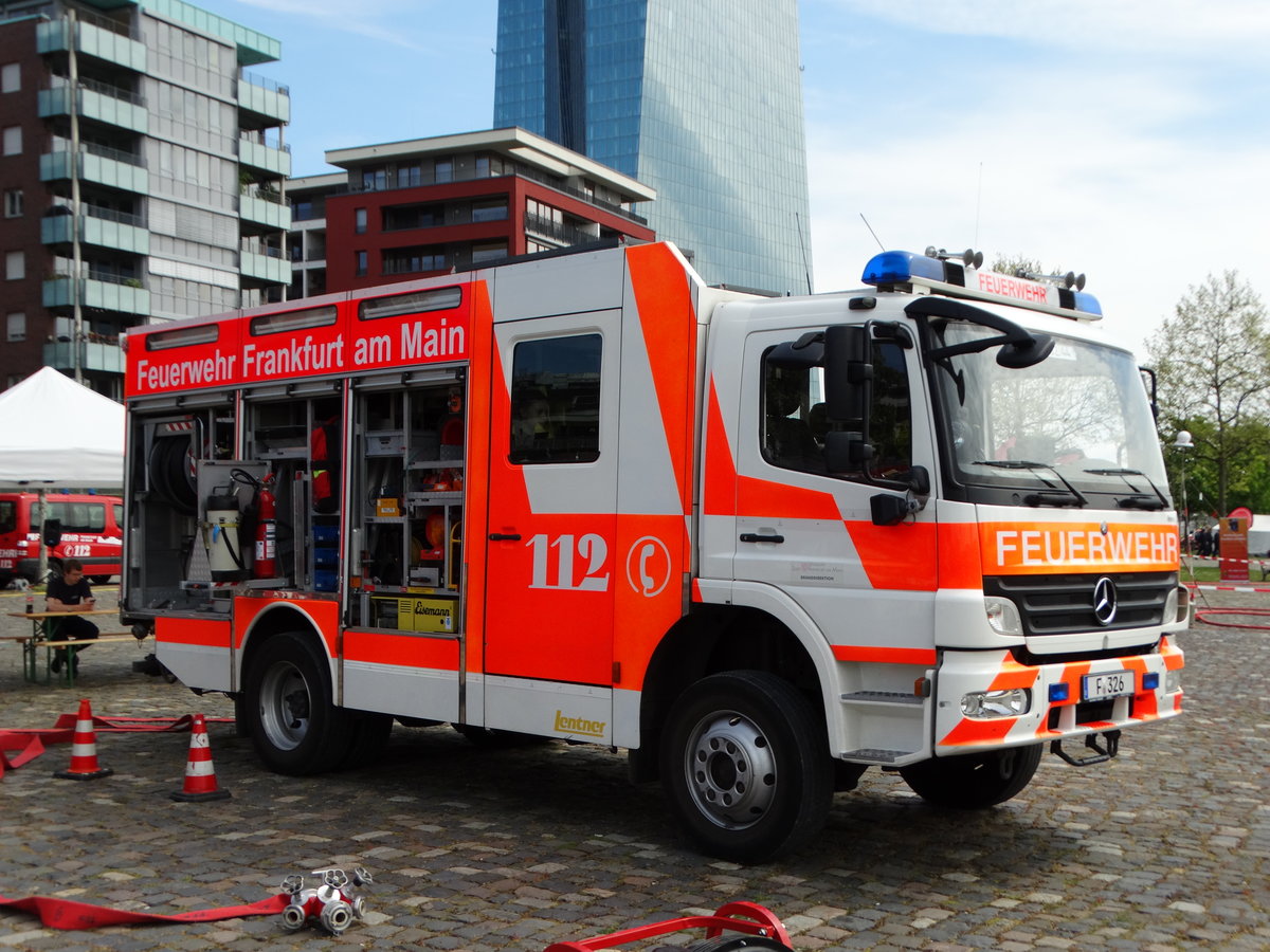 Feuerwehr Frankfurt am Main (Stadtteil Rödelheim) Mercedes Benz Atgeo LF20 am 30.04.16 am Mainufer. Diese Fahrzeuge waren bis 2013 noch bei der BF Frankfurt