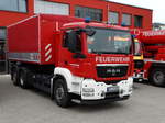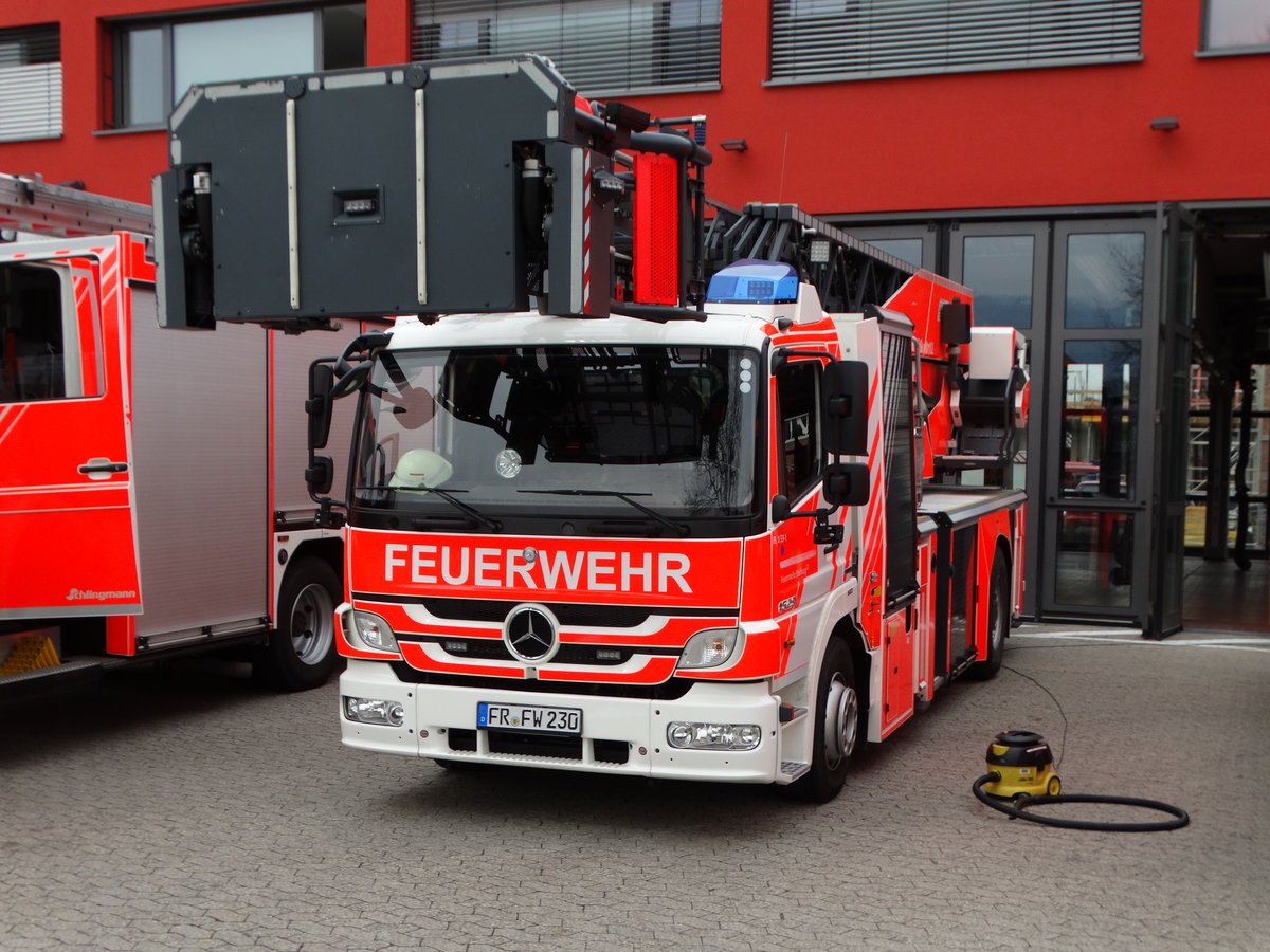 Berufsfeuerwehr Freiburg Mercedes Benz Atego DLK (Florian Freiburg 1/33/1) am 24.03.17 vor der Wache. Ich habe nachgefragt ob ich fotografieren darf. Die Fahrzeuge standen gerade draußen.