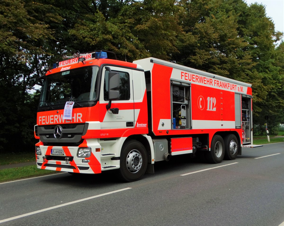 BF Frankfurt am Main Mercedes Benz Actros GTLF 10 der Wache 3 (Nied) bei einer Fahrzeugschau zum Jubiläum 125 Feuerwehr Sindlingen am 27.08.17.