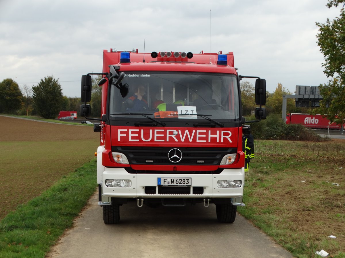 Feuerwehr Frankfurt Heddernheim Mercedes Benz Atego LF10/10 (Florian Frankfurt 22/43) am 28.10.17 im Bereitstellungsraum in Rödelheim wegen der Herbstabschlussübung der Jugendfeuerwehr