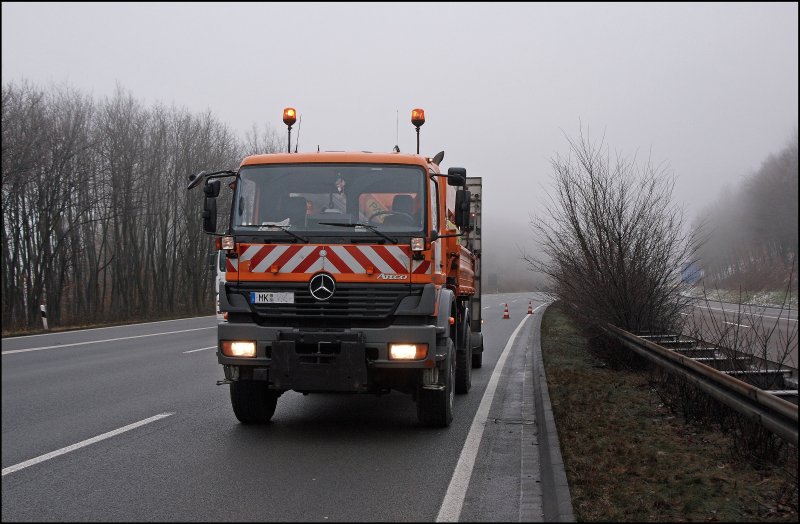Atego 1828 beim absichern einer Arbeitsstelle. (16.12.2008)