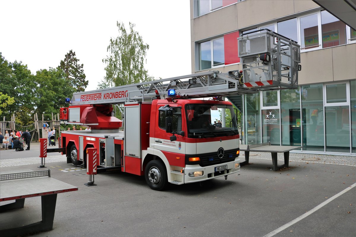 Feuerwehr Kronberg im Taunus Mercedes Benz Atego DLK 23/12 am 01.09.19 beim Tag der offenen Tür