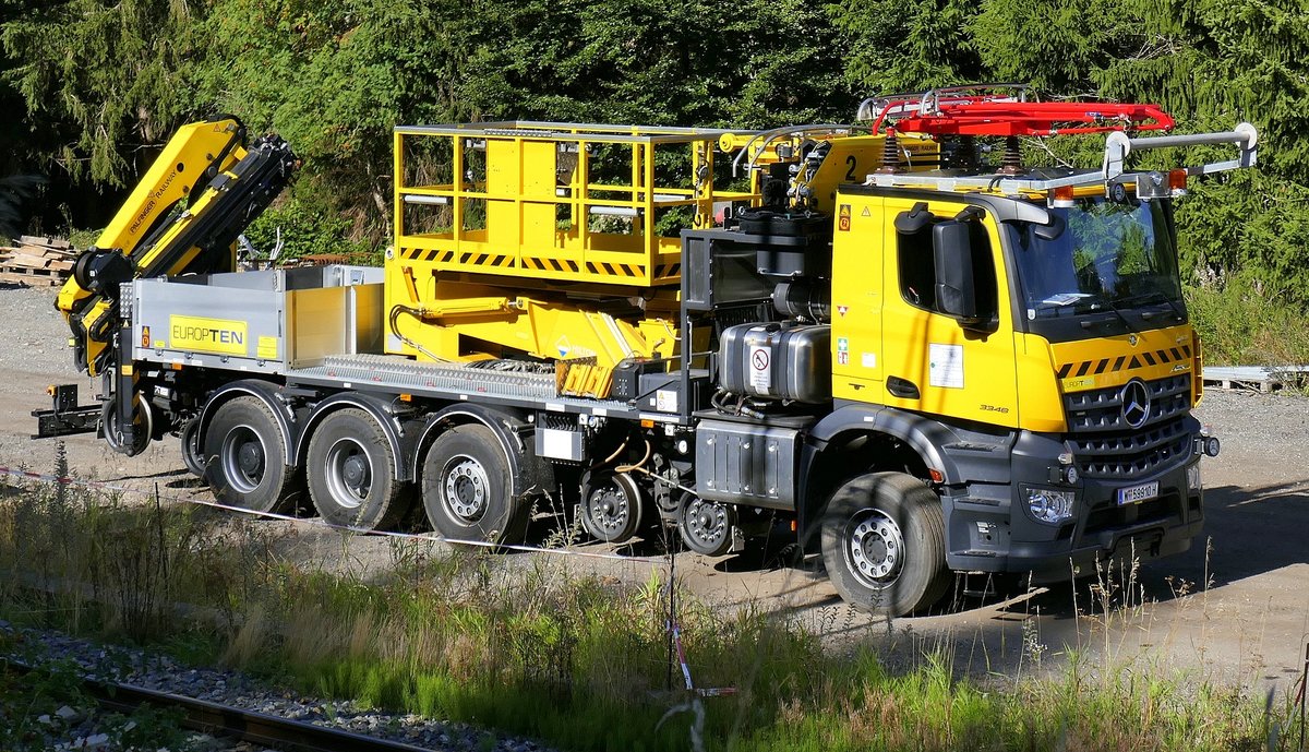 MB 3346, mit Montagevorrichtung für den Oberleitungsbau im Straßen-und Schienennetz, Sept.2019