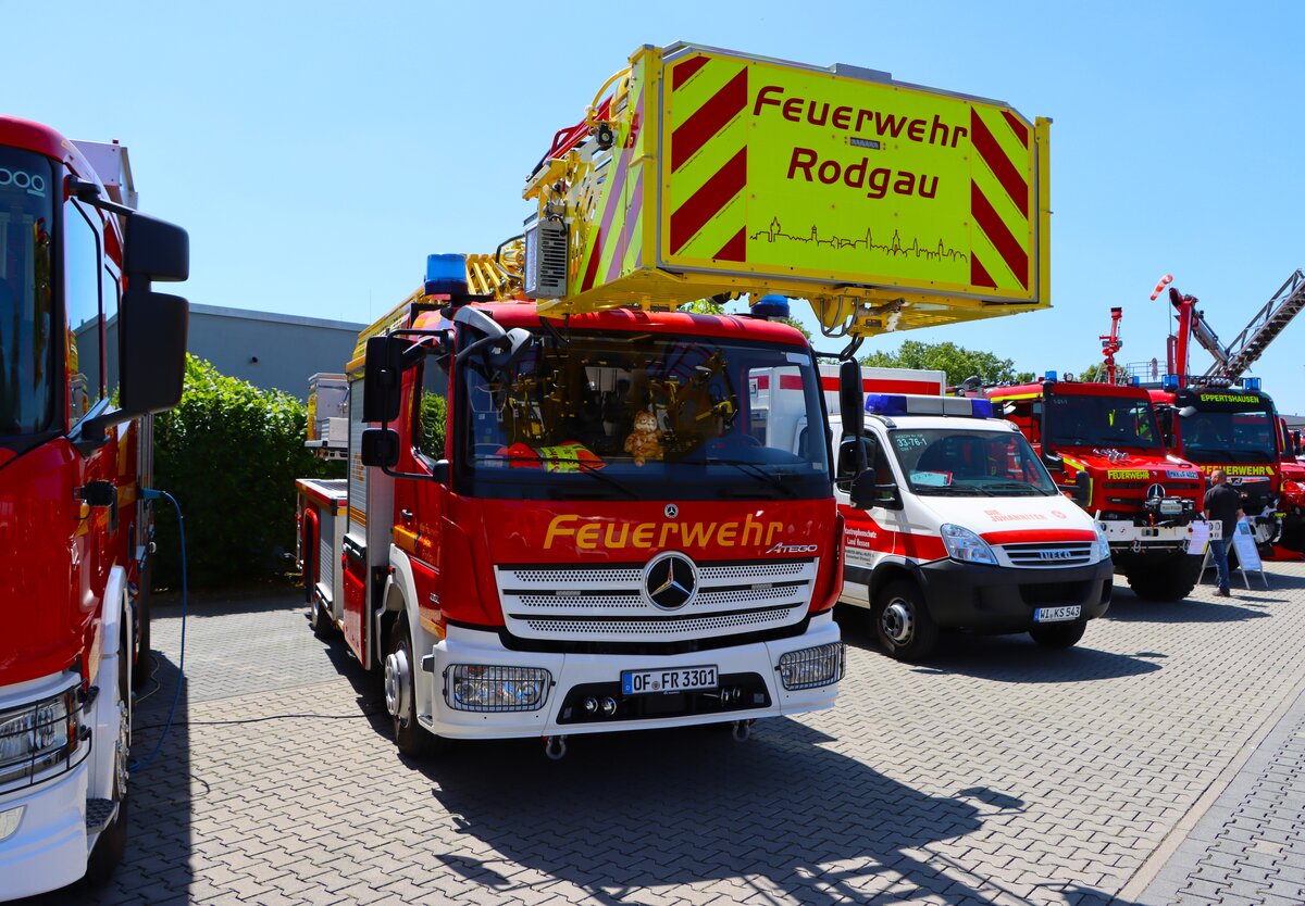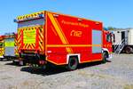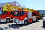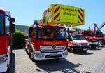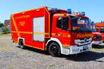Ein schöner Actros mit einem Segelboot auf dem Tieflader steht an der Raststätte Aachener Land.