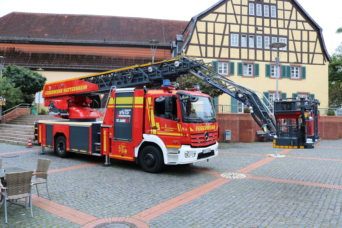 Feuerwehr Hattersheim Mercedes Benz Atego DLK 23/12 am 11.09.21 bei der 112 Jahre Feier auf dem Markplatz