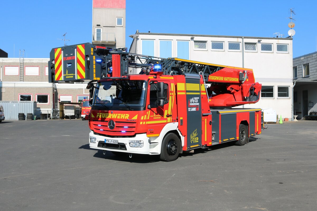 Feuerwehr Hattersheim Mercedes Benz Atego DLK 23/12 am 09.10.21 bei einen Fototermin