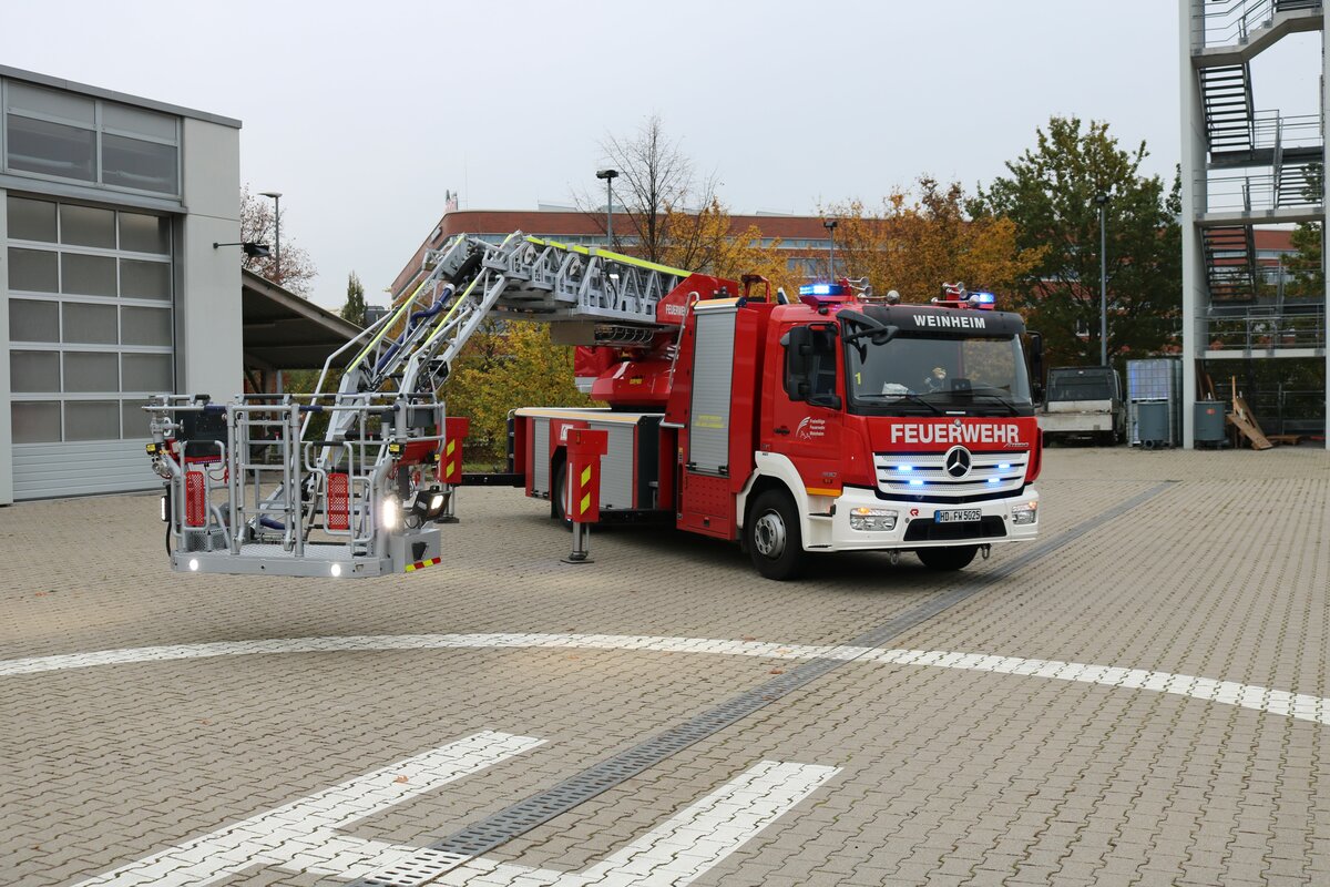 Feuerwehr Weinheim Stadt Mercedes Benz Atego Rosenbauer DLK 23/12 am 30.10.21 bei einen Fototermin