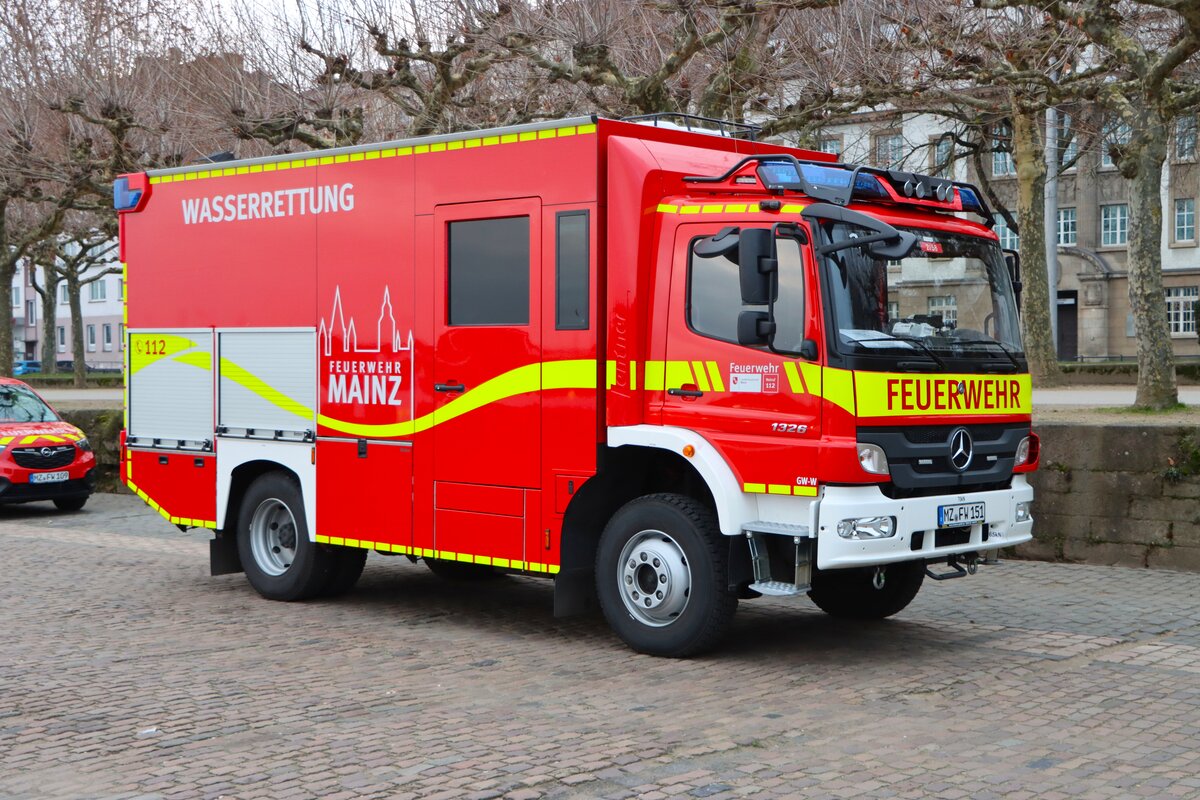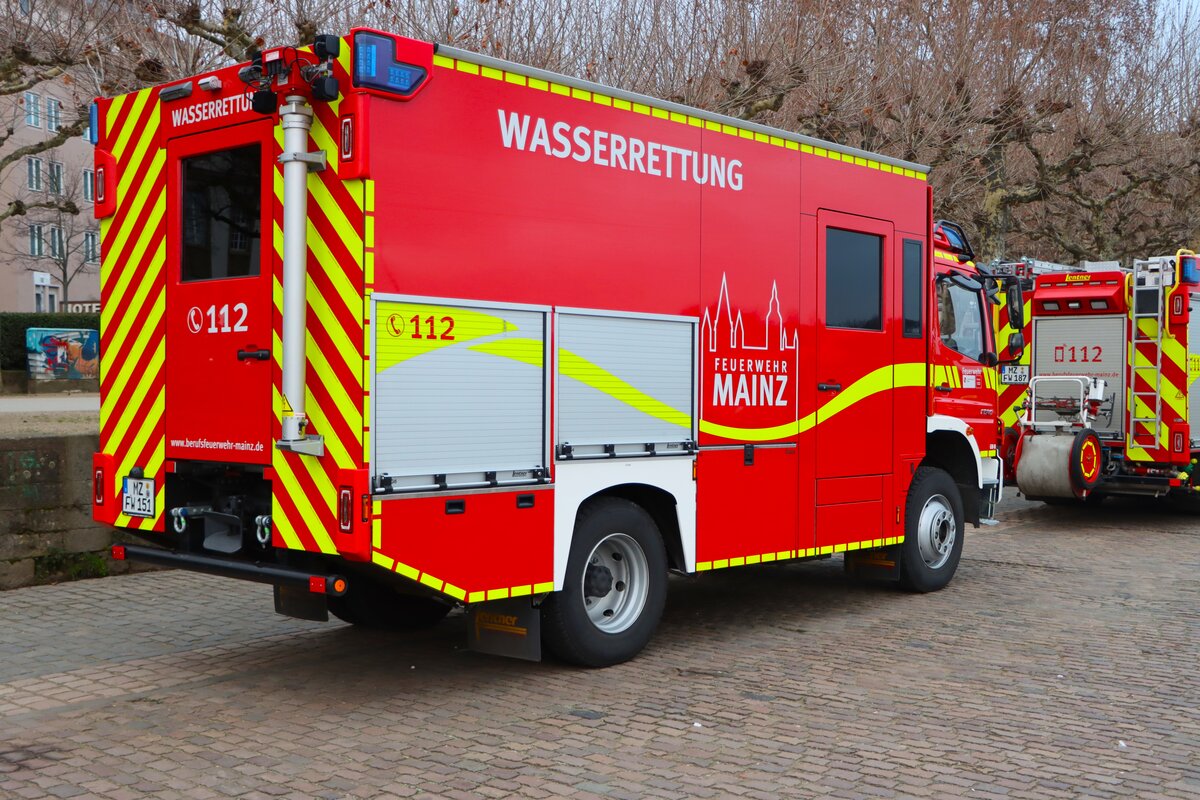 Feuerwehr Mainz Mercedes Benz Atego GW-Mess am 31.12.22 beim Silvesterschwimmen in Mainz am Rheinufer