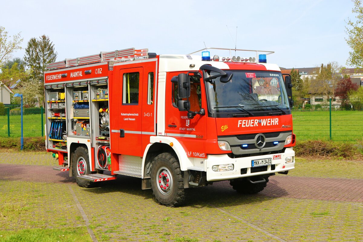 Feuerwehr Maintal Mercedes Benz Atego LF10 Kats (Forian Maintal 3-43-1) am 22.04.23 bei einen Fototermin