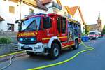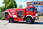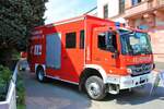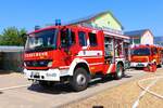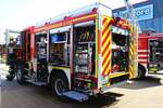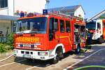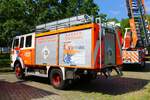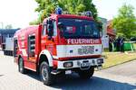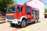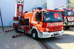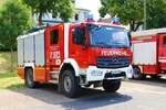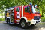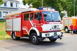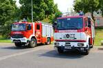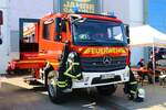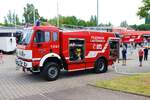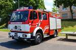 Feuerwehr Frankfurt Nied Mercedes Benz Atego LF20 Kats und Werkfeuerwehr Infraserv Höchst Mercedes Benz Ausbildungsfahrzeug am 24.06.23 in Frankfurt Nied bei einer Fahrzeugausstellung