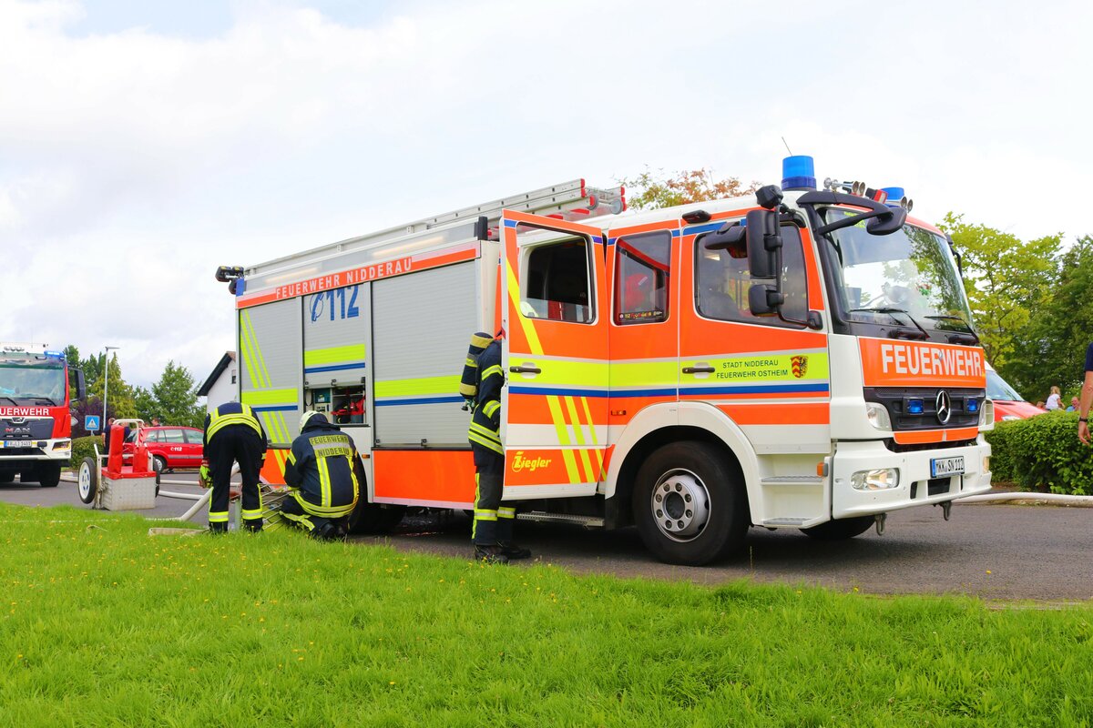 Feuerwehr Nidderau Mercedes Benz Atego HLF20/16 am 13.08.23 bei einer Übung in Hammersbach