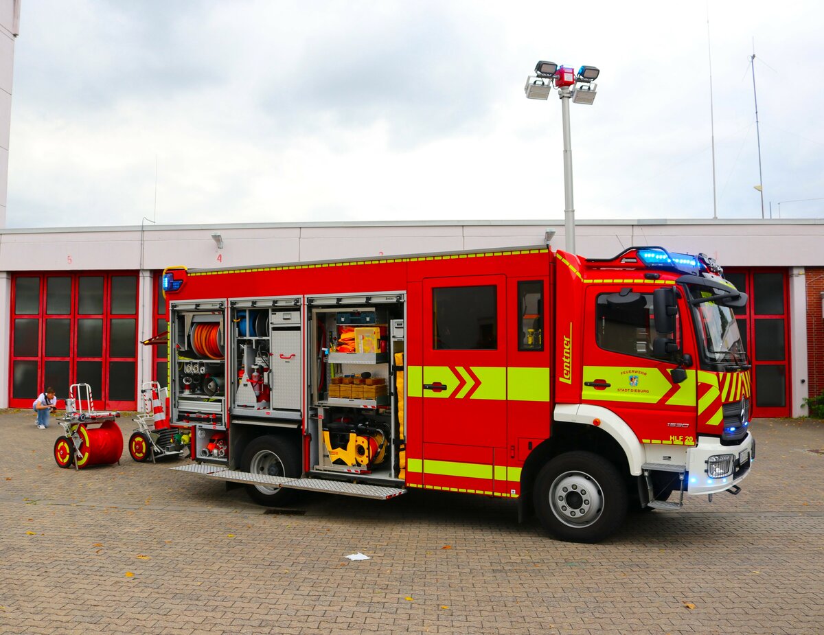 Feuerwehr Dieburg Mercedes Benz Atego HLF20/16 (Florian Dieburg 1/46-1) am 29.09.23 bei einen Fototermin. Danke für das tolle Shooting